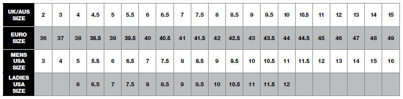 Diadora Sizing Chart